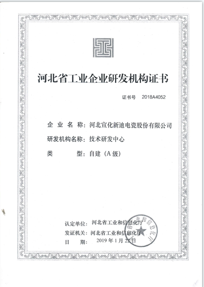 河北省工業(yè)企業(yè)研發(fā)機構證書