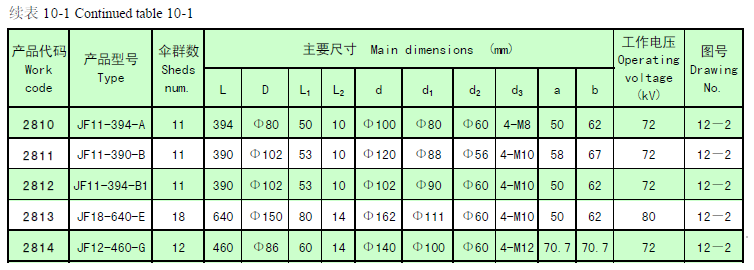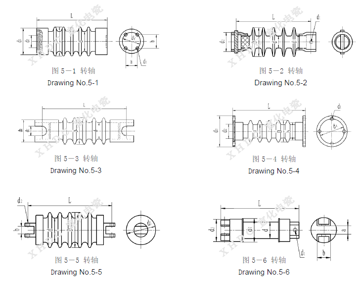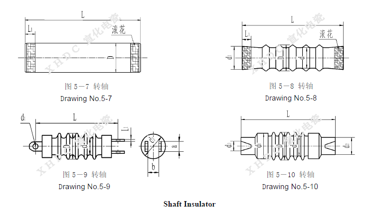 With different materials The ceramic shaft insulator can be used under the temperature ≤250℃ or ≤350℃ with the operating voltage ranging from 72kV to 120kV and a torque failing load not less than 1kN·m.