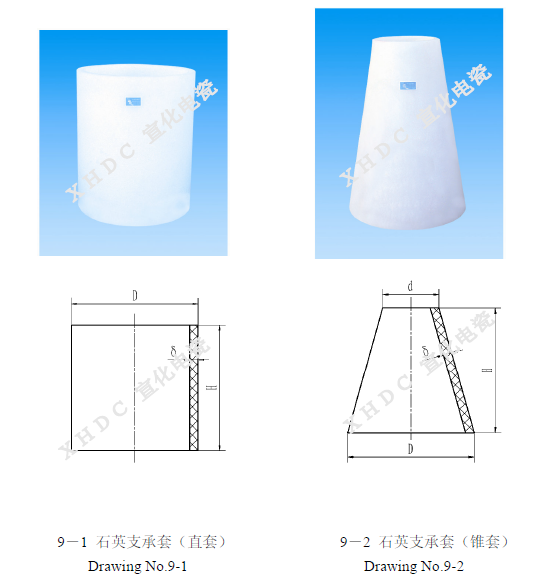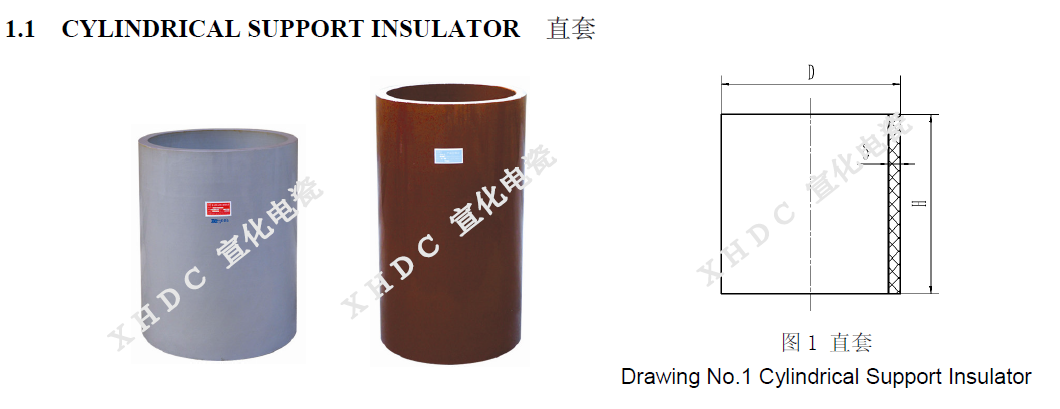 支承瓷套內外表面施以白釉或棕釉,兩端面研磨。