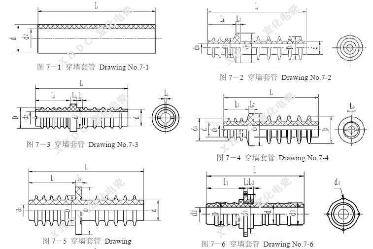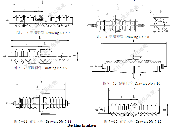 穿墻套管瓷絕緣子,用于電暈極母線穿過靜電除塵器殼體的支承和高壓絕緣。穿墻套管絕緣子按結構型式分為組合式和純瓷式兩種。